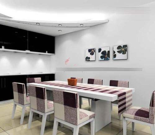 2、餐桌的質(zhì)地要講究:餐桌表面以易清理為本,大理石與玻璃等桌面較為堅(jiān)硬、冰冷,藝術(shù)感較強(qiáng),但因其易迅速吸收人體飲食后產(chǎn)生的能量,不利于就餐者的坐談交流,因此不宜全部用于正餐桌,但可以通過形狀和質(zhì)地進(jìn)行調(diào)和,比如:圓形的大理石餐臺或方形木桌等,有這些組合會帶來良好的效應(yīng)。