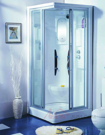 ?。?)淋浴房底盤分帶缸高盆和低盆兩種。帶缸式可坐人,適合有老人或小孩的家庭,還可一缸多用,洗衣、盛水等,但是搞衛(wèi)生麻煩。低盆比較簡潔,價(jià)格也低。底盤質(zhì)地分玻璃纖維、壓克力、金鋼石三種,金鋼石牢度最好,污垢清洗方便。