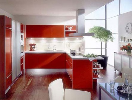 熱情奔放,充滿喜慶的色彩。年輕的新婚夫妻采用紅色最為貼切,不僅能體現(xiàn)出主人強(qiáng)烈、大膽的個(gè)性,更能展現(xiàn)青年生機(jī)勃勃的朝氣,顯示華貴。另?yè)?jù)測(cè)試,紅色能使食欲達(dá)到高峰。紅如朝陽(yáng),白如軟玉的紅白相間組合,利用白的溫和稍稍沖淡紅色造成的單調(diào)感覺(jué),使整體更富變化,更有生氣。紅與黃的搭配有一種壓得住的熱烈,輔以老式家具喜慶吉祥的用色手法,會(huì)使櫥柜顯出一派欣欣向榮的新氣象。