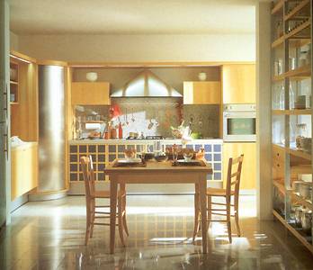 為方便使用,建議存放蔬菜的箱子、刀具、洗滌劑等以洗滌池為中心存放,在灶爐旁兩側(cè)留出足夠的空間,便于放置餐具。廚房較小,工作臺可沿一面墻一字型布置;較寬敞的廚房,則可沿兩面墻布置成走廊型,這種形式可容納幾個人同時操作;也有把工作區(qū)沿墻作90度雙向展開的L型,可方便各工序連續(xù)操作。