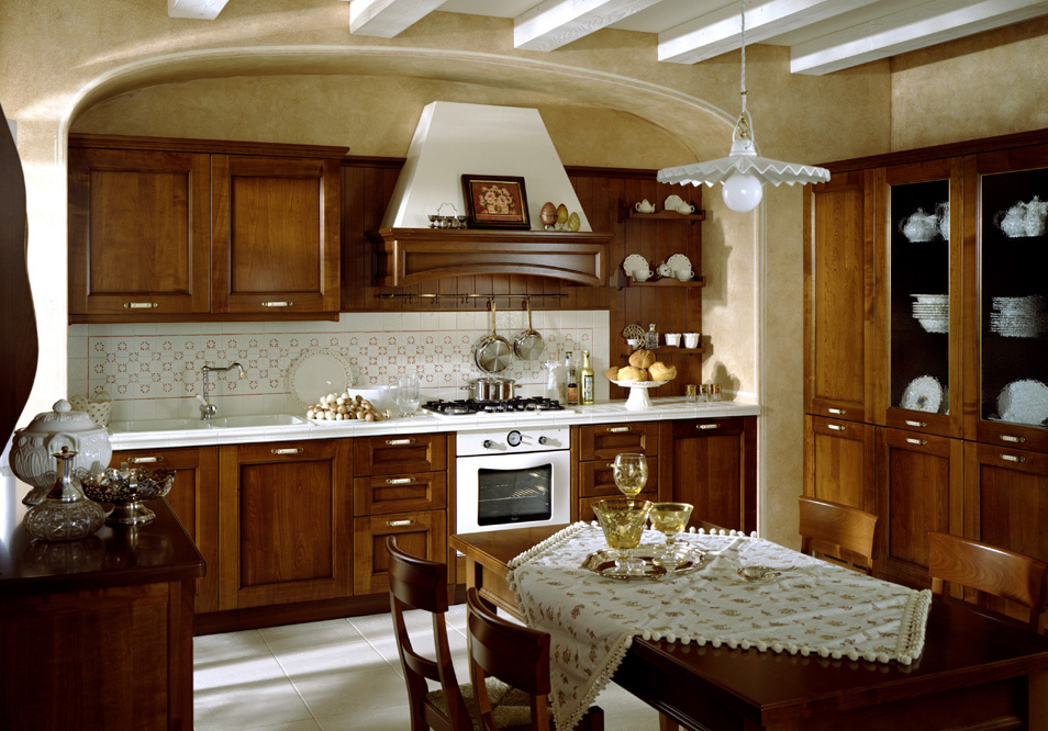 古典風格典雅尊貴,特有的親切與沉穩(wěn),迎合了成功人士青睞古典風格的心理。傳統(tǒng)的古典風格要求廚房空間很大,U型與島型是比較適宜的格局形式。