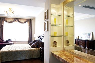 屋主說,客廳是他最喜歡的地方,由設(shè)計師親自挑選的細(xì)致水晶燈飾、雙色沙發(fā)的搭配,甚至于飾品的 擺設(shè),再加上搶眼的紅色柜面與門片,在年輕風(fēng)格之余,又增加了一抹屬于女人味的小華麗風(fēng)情。