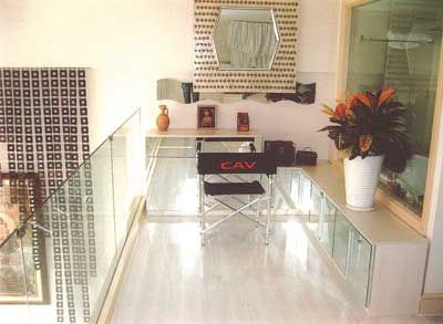 張咪的家可以總結為以下兩大特點:首先,全部設計和創(chuàng)意均是張咪本人的原創(chuàng);其次,家里許多裝飾細節(jié)都出自張咪之手,“開放”是這個家的設計主題。“家是我自己設計的!”張咪說這話的時候語氣很是平常,但能感覺到,她對自己的成果很滿意。張咪將對服裝的感覺應用到自己的家里來,應該不是件困難的事。張咪在原本平常的空間內,加入了自己喜歡的元素,同樣產生了不同一般的效果。