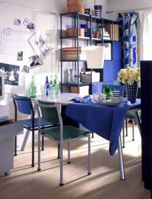 造型簡單、質感輕巧的家具,尤其是那些可隨意組合、拆裝、收納的家具比較適合小戶型。也可選用占地面積小、“身材”比較高的家具,既可以容納大量物品,又不浪費空間。