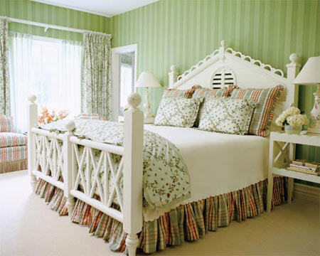 你也可以運用一些小技巧,把你的臥室布置的與眾不同。如在屋頂裝上長型的白熾燈,在燈的下方兜上一層白色輕質(zhì)透明的幔布,使強烈的燈光變得柔和,使房間看起來充滿情調(diào)。你也可以在床下裝上一盞藍色的燈,讓進入房間的人只看得到燈光而看不到燈泡,使你的床看上去象漂浮在水上一樣,這種設(shè)計會讓每個進過你房間的人感到你的別具匠心。
