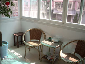 陽臺上可擺放竹質、藤質的擺設,營造一種田園氣息。比如,陽臺的窗戶可以掛上竹卷簾,幫助抵擋灰塵的侵入;墻面的擱板上擺放幾個既美觀又大方的竹制儲物籃,方便收納各種零星物品。如果有足夠的位置,還可放置一個藤質的搖椅,復古而典雅。在陽光燦爛的日子,置身這樣的陽臺,既舒適又寫意。