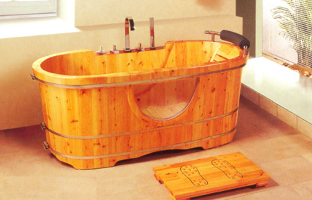 木質(zhì)浴桶與浴缸不同,它采用橢圓形的深型設(shè)計,其實木浴桶能夠為更多人采用的原因之一,在于它占地面積小,無須安裝,可以一步到位。不同年齡、不同身材的使用者,應(yīng)選擇不同造型的浴桶。消費者在選用浴桶的型號、款式時要注意衛(wèi)生間面積的大小以及門框的寬度。