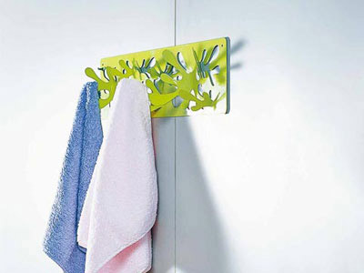收納浴衣、浴巾、毛巾等織物的掛件,掛鉤設(shè)計(jì)成枝丫的形狀,能同時(shí)掛放多件織物,可安放在淋浴區(qū)的附近,掛換洗衣物。