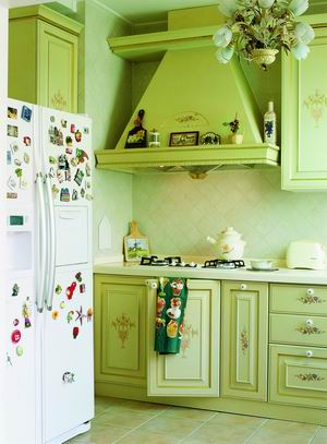 廚房也是我們體現(xiàn)春天的好地方,換上一款白綠相間的格子桌布,幾絲淡淡的綠色,就會(huì)把春的氣息點(diǎn)綴得極其到位,如果把餐桌椅的套子換成一致的綠色,整間廚房會(huì)更加和諧。在墻磚上貼上一些富有春意的水貼畫(huà),可以把我們的心拉回童年般的純真可愛(ài)。
