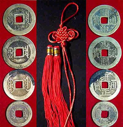 另一個(gè)旺宅同時(shí)旺財(cái)?shù)姆椒?,是將五帝古錢順序放在屋內(nèi)地主之紅磚上;其擺放的次序分別是,以地主牌為后方,前方放順治,右方放康熙,中間放雍正,左方放乾隆,后方放嘉慶,放好后將香爐壓在中間雍正錢上便可,注意是字腳向地主牌處。