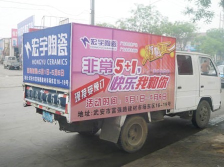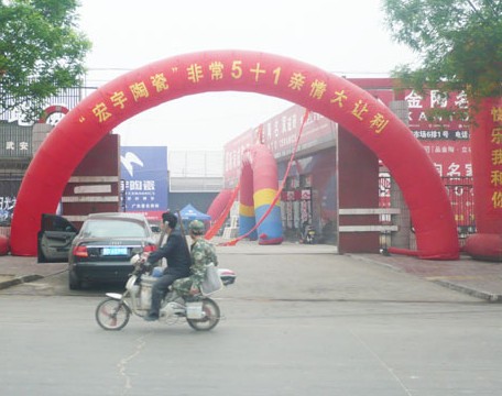 為了擴大活動影響,宏宇陶瓷武安專賣店進行聲勢浩大的宣傳推廣,提前在各大交通要道擺放了大紅拱門,還安排車身精心設(shè)計包裝的品牌宣傳專車進行巡游,派出了工作人員廣泛派發(fā)傳單。宏宇還精心布置了現(xiàn)場,充滿節(jié)日的喜慶氣氛,除了門外面向大道的高大拱門,店內(nèi)還張貼了活動海報,擺放氣球、x架等等。