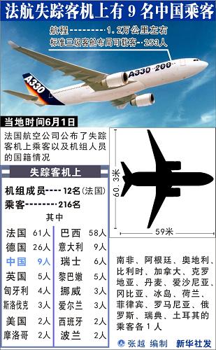 圖表:法航失蹤客機上有9名中國乘客 新華社發(fā)