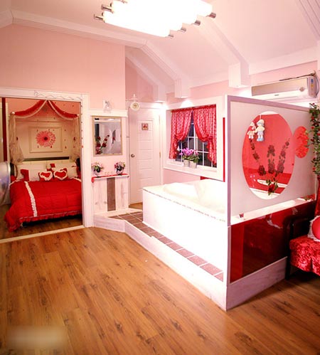 當(dāng)你有了一個(gè)純白的底色時(shí),你就可以讓顏色在上面歡呼雀躍了。純凈的紅黃藍(lán)綠任意穿梭翻滾,可以有點(diǎn)卡通,可以有點(diǎn)童趣,可以丁丁當(dāng)當(dāng)如童聲笑語般張揚(yáng)燦爛。白色是最好的底色,只需要留住足夠的底色,其他顏色便可以百無禁忌。同理,在選擇浴室用具上,新穎、別致、夸張的造型是上選。