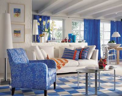 8、房間的顏色:房間的顏色以白、黃、藍、綠諸色為佳,木色亦可,忌用黑色,少用灰色。天花板顏色宜輕不宜重,因為上古天地初開只是渾沌一片,其后分化為二氣,氣之清濁者下沉而為地,于是才有天地之分??蛷d的天花板象征“天”,顏色當然是以輕清這宜。所謂輕清,是指較淺較淡的顏色;一般來說以白色、淡黃色和淺藍色為主,象征朗朗藍天,而白色則象征白云悠悠。而地板的顏色則宜稍深色為主,以符合天輕地重之義。