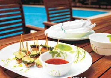 倘若能將廚房里的餐具也換上春裝,甚至增加幾件含有科技成分的新餐具,心情豈不是更好?選一款來自美國的康寧玻璃“瓷盤”(約100元/個),感覺像被施了障眼法。明明是三層夾層玻璃結構,但外表卻像瓷器,光潔細白,鮮亮如新,比普通瓷盤薄1/3,拿在手里無比輕巧。圖案也很明媚,以印花為主,這個季節(jié)不如選套幸運草或歐洲香草系列餐具。草,本來就含有希望和生機勃勃的寓意,更何況色彩清新、亮麗,正好和明媚的春天相映成輝。