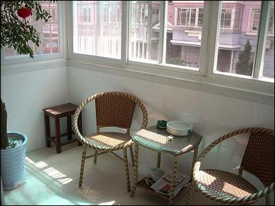如果你實在想讓室內(nèi)空間增大,那就將陽臺和居室打通,選擇落地窗會使你既保留陽臺的感覺,又有較強的私密性和裝飾效果。在裝修初期,將臥室與小陽臺的地面選擇同樣的地板,會更有延續(xù)性。在落地窗下擺放兩把有造型的椅子和一張茶幾,喝茶、看書,愜意無限。