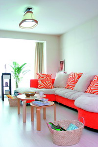 ?。蹠蛥^(qū)]這里的每一樣家具和擺設(shè)都是家具店里最常見的,可是,當(dāng)他們安靜的靠在一起,就成了這首曲子最完美的部分。紅赫條紋布藝沙發(fā)帶有女人的嬌艷和男人的內(nèi)斂,張揚中舒緩著沉穩(wěn)。永恒的黑白配似乎也成了線譜上的音符,白的擔(dān)任靠椅,黑的圓形小茶幾,視覺對比的沖撞中帶出了旋律般的美感。在固有在美麗中,是沙發(fā)后探出頭來的綠意賦予了樂曲生命,生活的氣息,就在這不經(jīng)意的目光所及中彌漫。