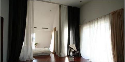 除了深紅色的木地板和木色櫥柜,白色是房間的主要色調,窗簾、沙發(fā)以及白色的地面都拉近了人和自然的距離。玻璃茶幾,既通透明亮,又簡約美觀,富有現代感。主人從國外帶回的花瓶,晶瑩剔透,花瓶里的二枝紫色百合,更象輕盈的仙子飄臨人世。帶有生命氣息的綠色的植物點綴在各個角落,另室內變得空靈而高雅。簡素的物體和天然之材所營造的室內空間,使人的心境平和與安祥,超然物外。在這純自然、高簡素的色調中,展現出的是一種樸素、簡約之美。