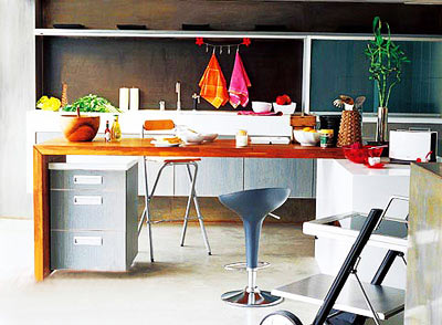 以前各樓盤(pán)的戶型,大多數(shù)的廚房面積都是3~4平方米,而我們的日用家電又越來(lái)越多,怎樣在有限的空間內(nèi)把這些家電和廚房用品都安置好?專家介紹,要把小面積的廚房變大可以考慮以下幾個(gè)方面:“借”空間;開(kāi)發(fā)收納空間;把微波爐、冰箱等廚房用品放到餐廳處。特色間隔 廚房也能大變身 餐桌風(fēng)景線 色彩構(gòu)造美廚房  4種解決方案 餐廳沐浴陽(yáng)光下
