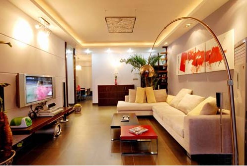 2、吊頂形式要與地面擺設相協(xié)調——以直線吊頂為例,直線吊頂圍繞四周走一圈,相當于把某個區(qū)域框出來了,此時,如果頂面燈具位于吊頂的中心點,地面家具的擺放應與其相呼應,否則,人坐在沙發(fā)上,看頭頂的燈,會感覺燈象歪了似的。