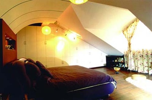 適用房間:多見于別墅,適合層高特別高或者頂面是尖屋頂的房間,要求空間最低點大于2.6米,最高點沒有要求,通常在四五米左右。