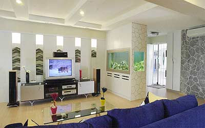 概要: 魚缸筑墻,不但讓人眼前一亮,而且能讓客廳享有更多隱私    把嗜好融入家居布置中,空中少爺?shù)聂~缸成了他與妻子愛巢的一大特色;配合上房子開放式的格局布置,寬敞無阻,家居生活如魚得水?! ∵@間5房式組屋,客廳、飯廳、廚房和消閑房都采取開放式的設(shè)計(jì),讓整個(gè)空間顯得額外寬敞。寬敞的設(shè)計(jì),正是屋主對房子裝修的最大要求。