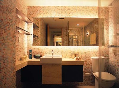 另外,燈具最好選用防水防潮的,室內(nèi)照明可用玻璃罩吸燈或吊頂上安裝有防護罩的日光燈,如安裝浴霸,浴霸本身帶有照明設(shè)備。