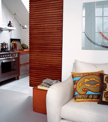 刺繡靠墊和裝飾畫(huà)在起居室起到了提亮空間的效果,與木本色和大量的白色形成強(qiáng)烈的對(duì)比,但又不顯得過(guò)于夸張。