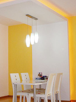 餐桌是格外需要烘托的。有人說(shuō)一張餐桌就是一個(gè)任由您打扮的模特。為了要顯出它獨(dú)特的風(fēng)格,可選擇不同的桌布,如簡(jiǎn)樸的麻質(zhì)桌布表現(xiàn)出一種傳統(tǒng)風(fēng)味,鮮艷明亮的桌布則能令人感到一種歡快活潑的氣息。另外,餐桌上方配以合適的燈具,既能讓人領(lǐng)略美食的“色”之美,又能營(yíng)造出一種迷人的氛圍。在精心打扮的餐桌旁和親朋好友一起享用一頓精心烹調(diào)的晚餐,濃濃樂趣,盡在其中。