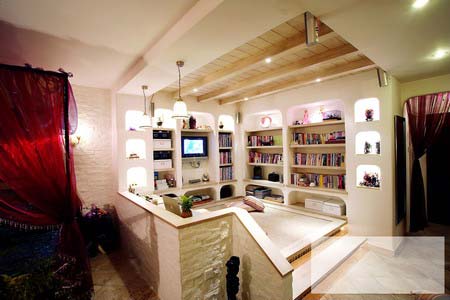沙發(fā)后、地臺(tái)上做幾個(gè)擱板,既可以放書(shū)和影碟,也能擺放玩具,作用多多。