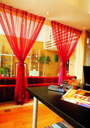 這套房子已經(jīng)達到中等戶型的上限——150平方米,客廳更是挑高達6米,這為設(shè)計師展示帶來了極大空間。樓梯下的書房采光不是很好,主人把整面墻換上了玻璃后,視線的擴展讓狹長的客廳不那么狹長了,書房也更明亮。不想相互打擾的時候,拉上紗簾就可以。這種設(shè)計是不是讓你眼前一亮呢?