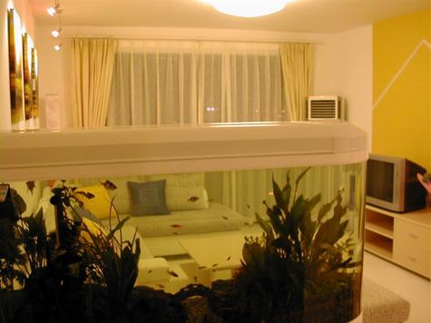 A、魚缸不宜過大;太大的魚缸會儲存太多的水,從風水的角度來說,水固然重要,則太多太深則不宜,而魚缸高于成人站起時的眼睛位置便是過高,因此客廳中的魚缸不宜過大過高,尤其是對面積細小的客廳更為不宜。