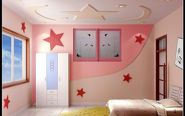 概要: 粉色小公主裝修,整個公主房的亮點是星星和月亮的吊頂,和墻壁獨特的造型,想象小主人趟在床上,看著星星月亮微笑入眠,會不會很愜意呢。