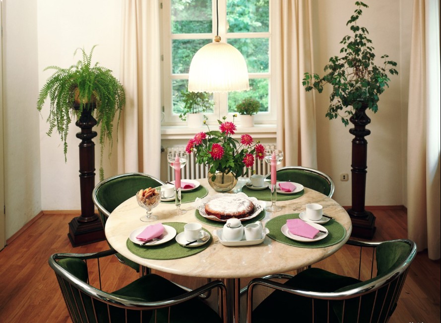 餐廳的布置及設(shè)計(jì)都選用相當(dāng)簡潔的手法,使空間感更強(qiáng)。三口之家選用圓型餐桌,可以有效地建立起一種溫情暖意的家庭氛圍。