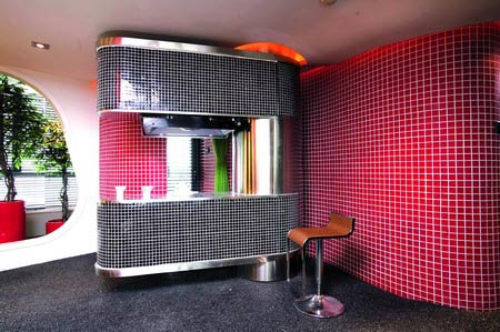 不是沒有見過在家里大面積地使用色彩的人,只是很難像Alex用得這么純粹、這么濃烈。大紅的馬賽克、純黑的地面和墻、綠色的窗簾和洗手間,大面積的色塊形成強(qiáng)烈對比,在短短的方寸之地體驗(yàn)著強(qiáng)烈的視覺沖擊。