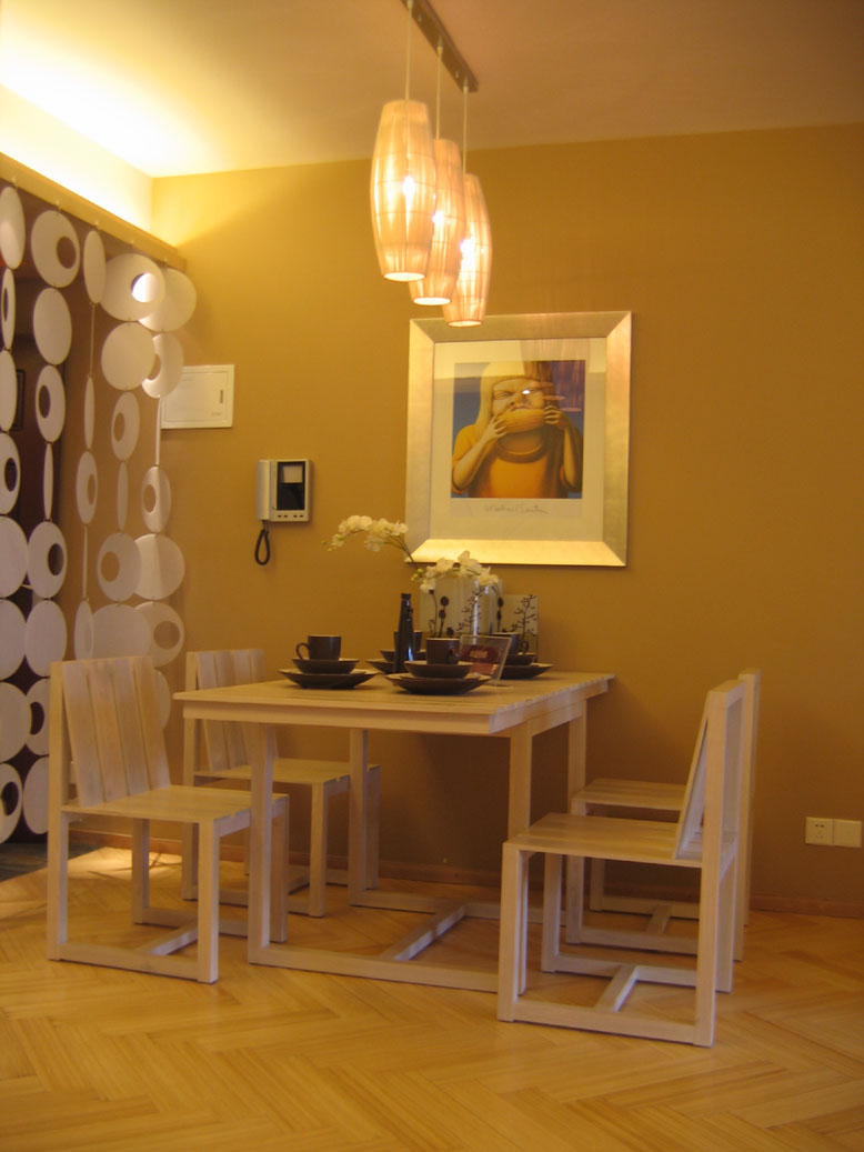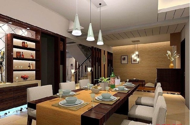 餐廳裝飾要美觀實(shí)用。地面一般應(yīng)選擇大理石、花崗巖、瓷磚等表面光潔、易清潔的材料。墻面在齊腰位置要考慮用那碰撞、耐磨損的材料,如選擇一些木飾、墻磚做局部裝飾、護(hù)墻處理。頂面宜以素雅、潔凈材料做裝飾,如乳膠漆等,有時(shí)可適當(dāng)降低頂面高度,以給人親切感。餐廳中的軟裝飾,如桌布、餐巾及窗簾等,應(yīng)盡量選用較薄的化纖類材料,因厚實(shí)的棉紡類織物極易吸附食物氣味且不易散去,不利于餐廳環(huán)境衛(wèi)生。