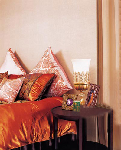 低調(diào)奢華的居室風(fēng)格,需要營造出層次豐富、色彩馥郁的視覺效果。華麗的色調(diào)加雍容的質(zhì)地最能表現(xiàn)低調(diào)奢華的氣質(zhì),有光澤感的面料和金棕、褐色系一起隨著光線的改變讓居室呈現(xiàn)出不同的表情。在整體布藝的材質(zhì)選擇上要十分注重做工精細(xì)、用料講究的高檔面料。 金色飾品是提升高貴氣氛的點睛之筆,在造型上,可以嘗試略顯繁復(fù)的鏤空或嵌絲設(shè)計。