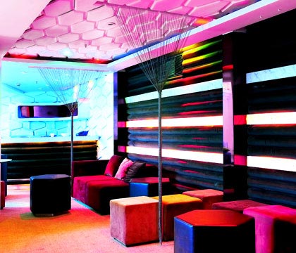 折線與金屬展現(xiàn)出的是設計師十足的個性與嫻熟的空間把握能力。鮮艷的紫色玻璃足以調動人們的視覺神經。