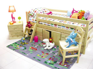 由于兒童好動(dòng)的天性,在選擇家具時(shí)應(yīng)棱角圓滑,杜絕銳角,固定家具用的鉚釘?shù)炔煌饴?,或鑲以橡膠條等柔軟之物,以防孩子在奔跑中碰傷。床邊應(yīng)設(shè)有護(hù)欄,結(jié)實(shí)而且還有一定的高度,以防在睡眠中從床上墜下來(lái)跌傷,柜櫥門(mén)的把手也應(yīng)方便兒童的握取。