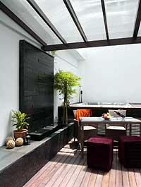 有水力按摩池的天臺,擺了桌子與休閑椅,是屋主夫婦休閑的去處。