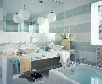 25、浴室內色彩的協調統一是指整體空間而不是局部。如白色清麗舒暢,象牙臺雅致高貴,湖綠色自然溫馨,玫瑰紅則浪漫含蓄。裝修時,應以衛(wèi)生潔具三大件的色彩為主色調,墻、地色彩則與之保持一致;有時,為突出潔具和墻體,浴室地面也可鋪設成淺咖啡色,因色彩上冷、暖交相而顯現出空間的立體感。不過,面積較小的浴室更宜用冷色調。