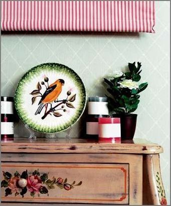 布置窗的時候,不僅要注意色彩和諧,也要講究風(fēng)格的統(tǒng)一。梳妝臺上的手繪玫瑰圖案跟粉色條紋棉布窗簾在色彩上形成和諧呼應(yīng),手繪瓷盤典雅而不失活潑,為點睛之筆,烘托出一派英式鄉(xiāng)村風(fēng)格,與室內(nèi)整體格調(diào)完美統(tǒng)一。餐廳的窗下,最適合布置成這樣隨意溫馨的小景。