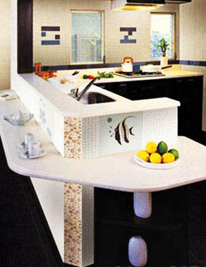 吧臺(tái)應(yīng)具有多少長(zhǎng)度才方便使用呢?一般來說,最小的水槽需長(zhǎng)60cm,操作臺(tái)面60cm,其他則按自己的需要度量即可。