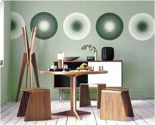 4、色彩設(shè)計需要創(chuàng)新:圖案、墻面畫飾或者意象派的點與碎片都能創(chuàng)造極佳的效果,同時又可以取代墻上的掛畫。