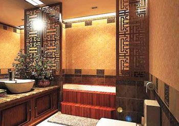 對于那些既喜歡“中國風(fēng)”,但又不想把衛(wèi)浴設(shè)計成純粹中式的,可以選擇歐式仿古瓷磚。比如金意陶瓷磚就很典型。還要注重局部裝飾,燈飾、浴室柜等的選擇可以偏新亞洲。