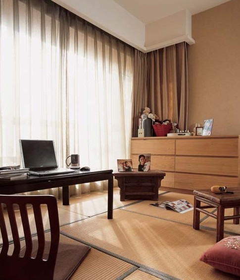 概要:   棕色的暖爐臺是主臥內(nèi)另一種日本特色的家具。在日本,這種臺底下有炭火,臺上面蓋上毯子,大家可以一起把腳伸進(jìn)臺下取暖。平時用作餐桌或茶幾,冬天可以當(dāng)暖爐?,F(xiàn)在炭火是沒有,但在陽光暖暖的下午,坐在低低的靠背椅上或曬太陽或喝茶,或隨意翻幾本雜志,慵懶的心情不請自來。累了還可以躺在榻榻米上美美地睡上一覺,這種感覺已經(jīng)足夠吸引人,恨不得馬上來一次徹底放松。