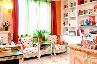 酒紅色的沙發(fā)構(gòu)成了色彩的主體,里面蘊藏著古老與懷舊的情致。她特別縫制了一對靠墊,白色底面上浮現(xiàn)著輕盈的綠葉和**的碎花,給人一種清雅靈動的感覺。深紫色窗簾厚重的棉制布料,恰好呼應(yīng)了沙發(fā)豐滿圓潤的體態(tài)。草綠色的薄紗,或隱或現(xiàn),豐姿綽約。
