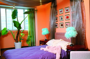 高榕說 臥室的床品顯得有些單調(diào)。辛苦一天的人都想立刻撲在床上睡個好覺,而床就應(yīng)該讓人有一看到就想撲上去的欲望。如果給它加上兩個長枕頭,四到六個大靠包,紗幔外加一頂天鵝絨的厚帳幔,顏色變得暖暖的,有一種曖昧的慵懶氣息在里面,好像歐洲城堡里的床,一定會讓女孩子做個美美的夢。