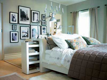 利用暖色(如紅色、橙色等)布置,能營造和諧溫暖感覺。利用冷色(如藍色、綠色、白色等)布置,令情緒舒緩平和;手工制作或手繪圖案的裝飾品最適合用于臥室,意德法家的設計師還直接把手繪瓷磚作為窗飾使用。