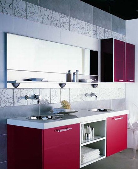 如果你的墻面底色較深就運(yùn)用博洛尼最大膽的POP花色瓷磚作為主題墻裝飾墻面吧。讓報(bào)紙堆砌出的亮麗色彩大面積裝飾,拼貼的效果會(huì)使浴室設(shè)計(jì)看起來更加大氣,配上熠熠生輝拉絲鋁浴室家具和亮面鏡子絕對(duì)拉風(fēng)。張揚(yáng)的創(chuàng)意是時(shí)尚年輕人不二的選擇。